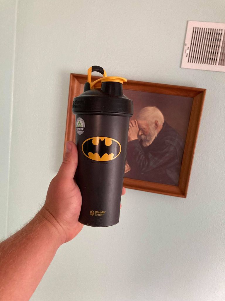 I got home at about 6:00 and had an appointment five minutes from my house at 6:30. It didn’t leave me as much time as I wanted to get ready, but sometimes we take what we can get. The first thing I did the second I walked in the door was fill up my 28-ounce Batman blender bottle with ice cold water, and I chugged it like I was a 21-year-old with a Busch Light. Immediately I had to pee. My initial thought was, “I can hold this for 20 minutes and then just be right away at the testing place.” I took about two steps, and my bladder said, “Sorry, buddy, you are peeing right now.” I think all 28 ounces of the Batman cup went straight through me, and I had an empty bladder again. I subbed out my shower beer for another 28 ounces of ice water so cold it’d make Wall Drug jealous. I started to immediately worry that I was not gonna be able to pee again.